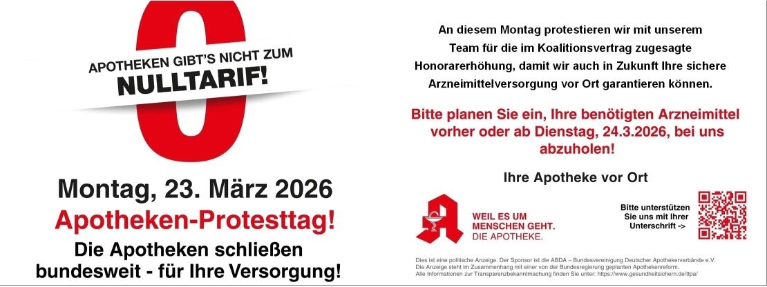 Melden Sie sich hier an und sichern Sie sich Ihren 10% Gutschein* für unsere Apotheke